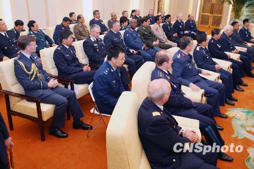 图:国家主席胡锦涛会见各国空军代表团(5)