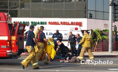 图:美国发生小轿车撞伤行人严重车祸(2)