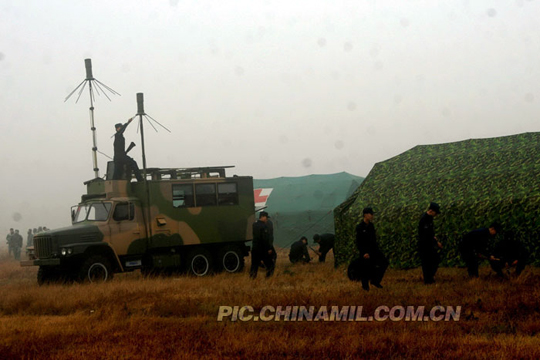 图为官兵们正在进行保障演练时的情景。鄢润波 摄