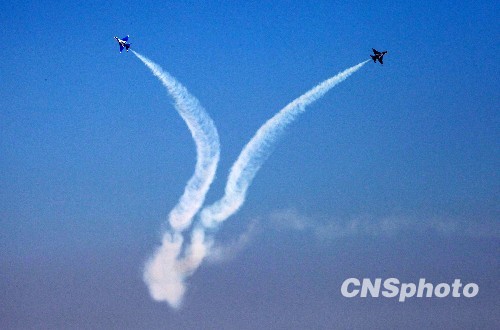 中国空军成立60周年纪念日进行首场飞行表演训练。中新社发 卢炳广 摄