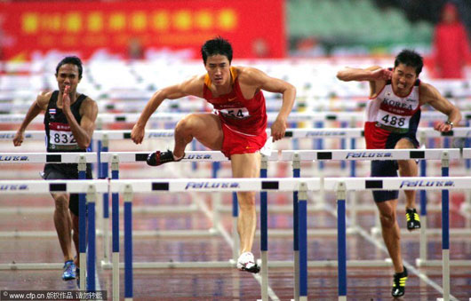 亚洲田径锦标赛压轴大戏——男子110米栏的比赛12日晚在广州上演。代表中国出战的跨栏飞人刘翔一骑绝尘,以13秒50夺取冠军,并获得了明年第11届世界杯赛的门票。这也是他在亚锦赛上的三连冠。