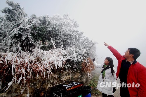 组图:江西庐山出现云海雾淞奇观(3)