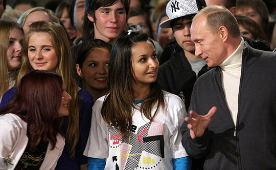普京亮相俄罗斯嘻哈音乐比赛现场(2)