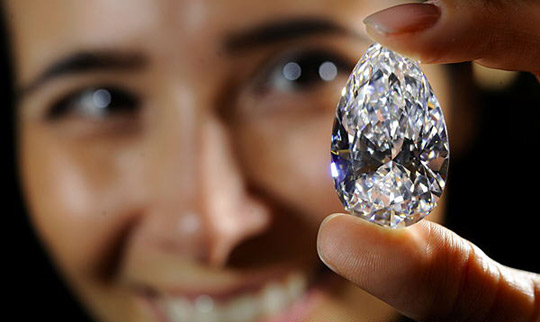 11月13日,一颗重62.3克拉、色度为最高级的梨形钻石,在瑞士日内瓦亮相。这颗钻石将在18日举行的日内瓦拍卖会上拍卖。