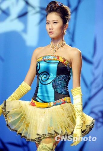 11月14日,第14届中国(虎门)国际服装交易会举行2010富民流行趋势发布会,新丝路超模演绎“国色天香”时装秀。中新社发 陈文 摄