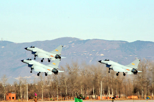 歼-10三机表演编队。 黄烁 摄