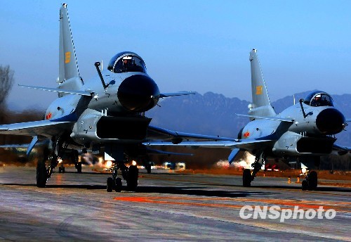 庆祝中国人民解放军空军成立60周年飞行表演,11月15日上午在北京沙河机场举行。表演按八一飞行表演队4架歼-10飞机表演12个动作和6架歼-7GB飞机表演15个动作,分四机对头交叉、四机菱形队大坡度盘旋、单机小速度平飞等27个动作,其中四机对头交叉动作是这次表演中技术难度较大的动作之一,这是国产三代飞机和国产二代飞机首次同场竞技表演。空军跳伞运动大队30名运动员表演了4个跳伞科目。中新社发 宋吉河 摄