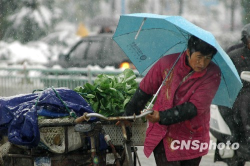 11月16日,安徽巢湖市民冒雪出行。中新社发 徐振华 摄