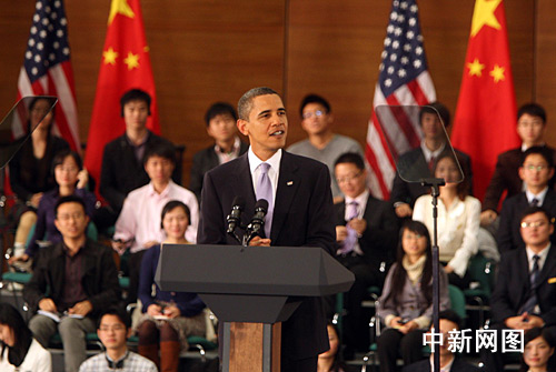 图:美国总统奥巴马在上海与中国青年对话