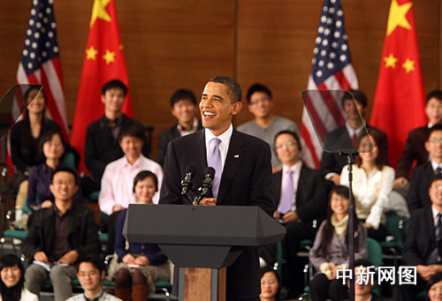 图:美国总统奥巴马在上海与中国青年对话(2)