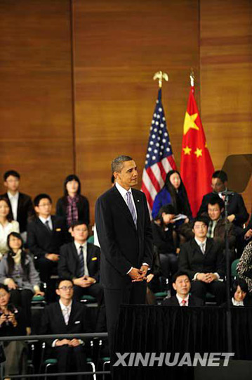 11月16日,美国总统奥巴马在上海科技馆与青年学生对话。 裴鑫 摄