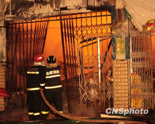 11月17日20时许,安徽合肥周谷堆大型批发市场干货区着火,共三十余间门面房遭受火灾,总着火面积约2000平方米。被烧物品主要为大棚二层上的油盐酱醋等物品。现无人员伤亡,起火原因及损失在进一步调查中。中新社发 张娅子 摄