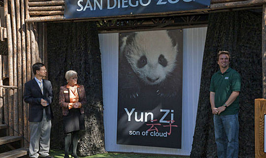 图为美国圣迭戈动物园为熊猫幼崽举行命名仪式。