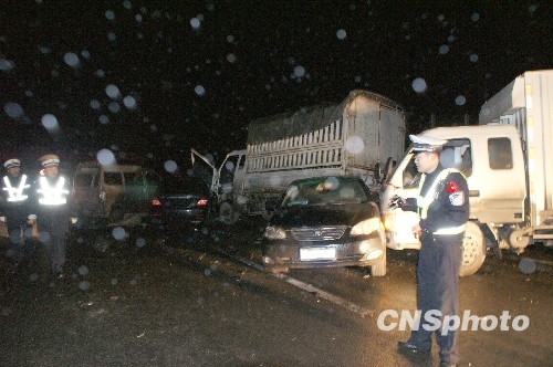 图:贵州镇胜高速凝冻致17车连环相撞(2)