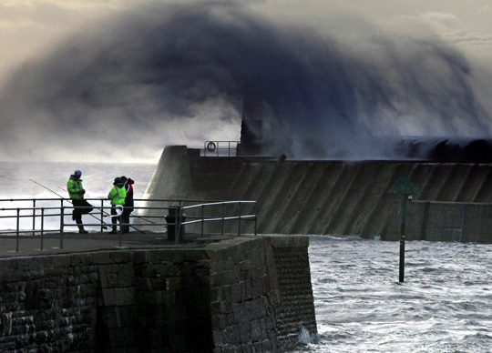 风暴袭击英国海岸 港口掀起滔天巨浪 (2)