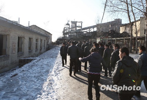 矿工家属来到事故现场。中新社发 房宝树 摄