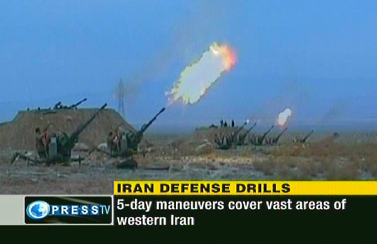 图为伊朗一家电视台播出的防空演习的电视截图。
