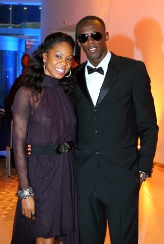 11月22日,2009年国际田联年度颁奖典礼在摩纳哥蒙特卡洛举行,牙买加“飞人”博尔特(右)和美国400米跑选手理查兹手(左)分获2009年度最佳男、女运动员。