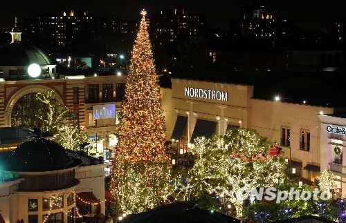 当地时间十一月二十二日晚,距离圣诞节还有一个多月,洛杉矶举行圣诞树亮灯仪式,一棵高达一百英尺的冷杉被装饰成华丽的圣诞树,树上共安装了一万盏小灯泡和一万五千个灯饰,号称全美最高的天然圣诞树。中新社发 张炜 摄