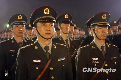 十一月二十五日凌晨一时,解放军驻港陆军部队轮换防务交接仪式上,即将离别战友、道别香港的官兵,此时有着难言的思绪。中新社发 郑祚声 摄