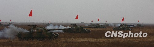 图为坦克攻击群实施多路突击。中新社发 毕华明 摄
