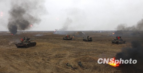 图为步兵和装甲车协同作战。中新社发 毕华明 摄