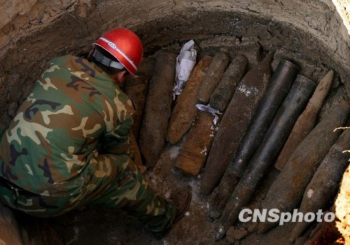 组图:沈阳集中销毁数百枚废旧炮弹(3)