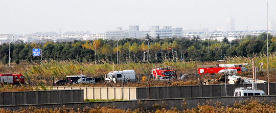 组图:一架津巴布韦籍货机在浦东机场坠落(3)