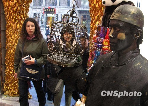 图:活体雕塑北京前门推销珠宝(2)