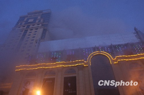 11月30日凌晨,黑龙江省哈尔滨市南岗区高层商厦大世界商城发生火灾,10个消防中队参与了灭火救援,目前伤亡人数不详。 中新社发 肖劲彪 摄