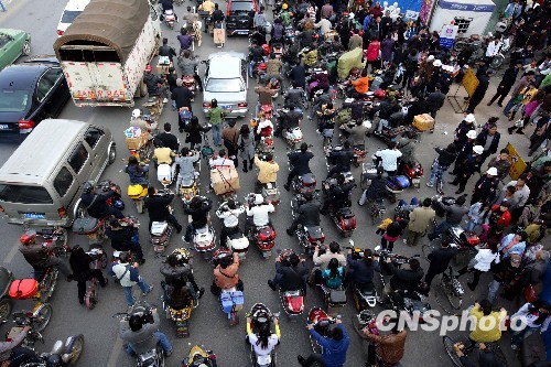 图为昆明螺蛳湾市场营业的最后一天,一大早大批市民不断涌入市场购物,以至于造成环城南路单方向大面积堵塞,到傍晚时分路况才有所缓解。中新社发 刘震 摄