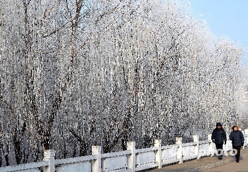 辽宁省锦州市迎来入冬后第一场雾凇。中新社发 谷进 摄