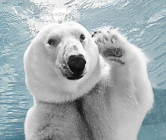 美国摄影师迈克尔·康弗的一组“北极熊戏水照”日前荣获第五十届美国传播艺术年展未出版组第一名。为拍摄这组照片,迈克尔在美国费城动物园守候了一个多月。照片中的主角是一只名为“Coldilocks”的北极熊,现年29岁。这只北极熊是非赢利组织为了提醒大众保护北极熊而被送到费城动物园的。