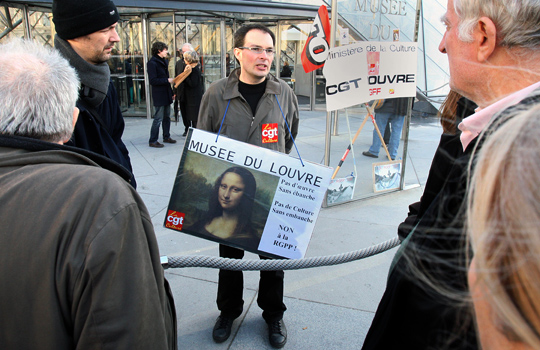 12月3日,法国巴黎卢浮宫博物馆因馆内员工罢工被迫关闭,停业半天后找来临时工才得以开馆。当天,巴黎三大美术馆中的另外两座蓬皮杜艺术中心和奥赛美术馆也因员工罢工不得不全天闭馆。博物馆员工们罢工的原因是因为最近法国政府推行的博物馆裁员计划,使得世界各地赶来参观的游客扑空。