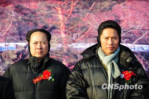 图为扮演毛泽东的演员韩中与扮演毛岸英的演员于晓光。中新社发 邱齐龙 摄