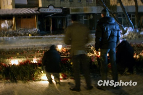 当地时间十二月五日深夜,在被大火燃烧后的比尔姆市一家夜总会门前空地上,仍有不少年轻人络绎不绝赶来,点燃蜡烛,献上鲜花,寄托对亲朋的哀思。当地时间五日凌晨,该夜总会在举行店庆活动时发生火灾,目前已导致二百余人死伤。