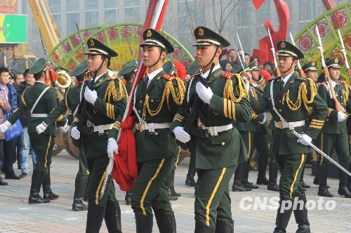 图为天津“国旗班”现场升起国旗,为开业仪式添彩。中新社发 李学仕 摄