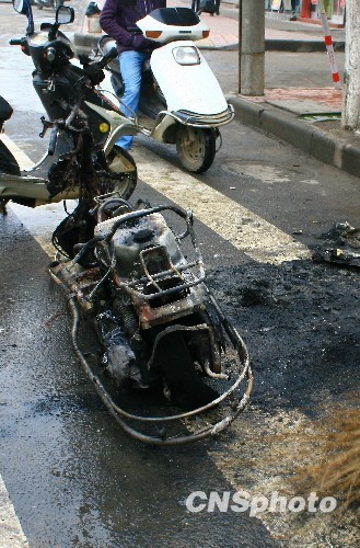 图:江西湖口一摩托车当街自燃成废铁(2)