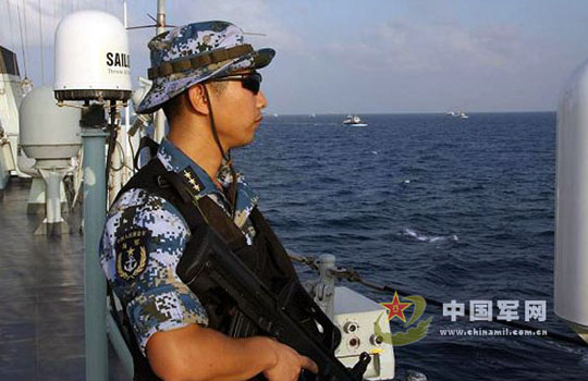 海军护航编队特战队员护航途中高度警戒(3)