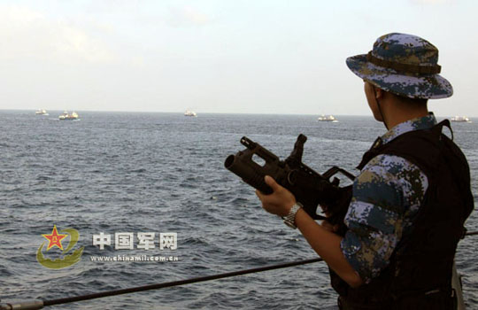 中国海军护航编队特战队员保持高度警戒,随时准备应对突发情况。徐叶青 摄