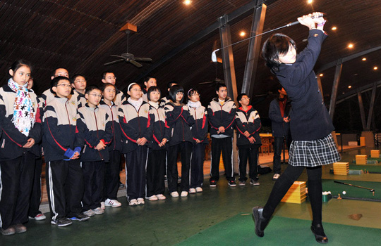 图:成都推行新课改 中学首开高尔夫球课(2)