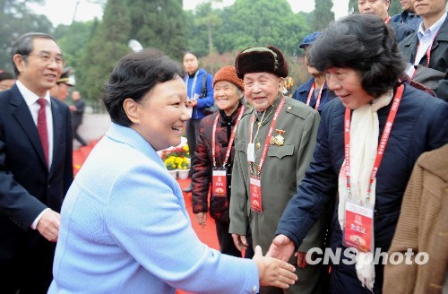 十二月十一日,由邓小平领导的百色起义八十周年纪念大会在广西百色市举行。邓小平女儿邓楠与红七军及红八军后代代表会面。中新社发 蒋雪林 摄