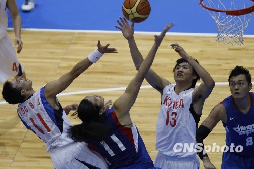 12月11日晚,2009香港东亚运动会男篮决赛在香港红磡体育馆进行,最终韩国队(白)以98:97战胜中华台北队夺得冠军。中新社发 盛佳鹏 摄