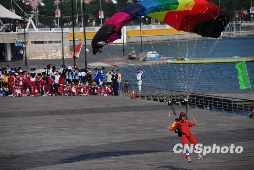 图:“八一”跳伞队澳门上演“仙女下凡”(2)