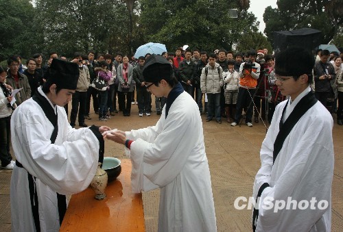 武汉大学生举行成人礼 披汉服行“冠礼”(6)