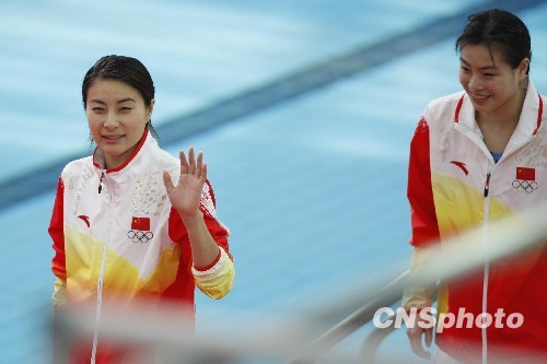 图为郭晶晶向看台上挥手致意。中新社发 盛佳鹏 摄