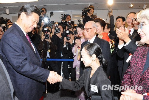 中国国家副主席习近平出席了东京中国文化中心的揭牌仪式,受到日本友好人士与在日华侨华人的热烈欢迎。中新社发 朱沿华 摄