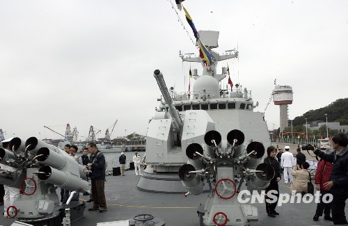 香港市民参观护航编队的军舰。中新社发 张勤 摄