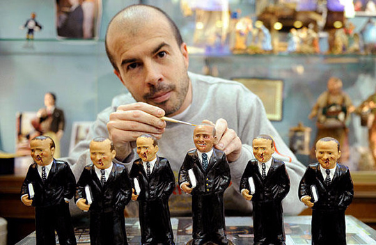 12月15日,意大利那不勒斯,意总理贝卢斯科尼遇袭后面部流血造型的玩偶出现在一家手工艺品商店。13日晚,贝卢斯科尼在米兰的集会活动上被意男子马西莫·塔尔塔利亚用雕塑纪念品砸中脸部,当即面部流血。