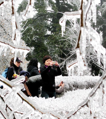 图:江西庐山出现美丽雾凇景观(3)
